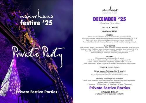 Celebrate with a Private Party at manorhaus Ruthin. We offer a variety of options for Private group bookings for between 12 and 24 including: