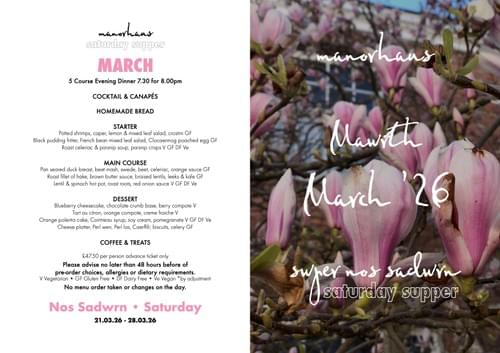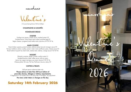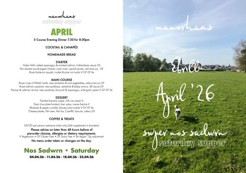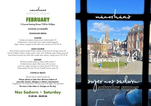 Manorhaus Ruthin RESTAURANT is open every Saturday evening offering our Saturday Supper - a fixed price seasonal menu offered on a pre-order ticketed basis (tickets must be purchased not less than 48 hours in advance) - with diners seated at their own individual tables from 2 to 12.