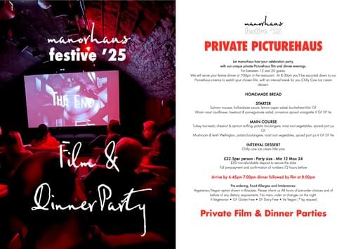 To attend any of our arranged Film and Dinner evenings please click on the PICTUREHAUS menu tab and join our film club as tickets are only available to members via the Film Club BOX OFFICE.
