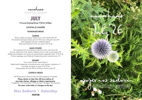 5 Course Evening Dinner 7.30 for 8.00pm