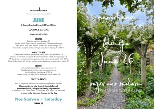 5 Course Evening Dinner 7.30 for 8.00pm